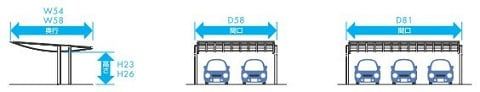 3台用の後方支持カーポートで、2本柱なのはエアロシェードが業界初なんです