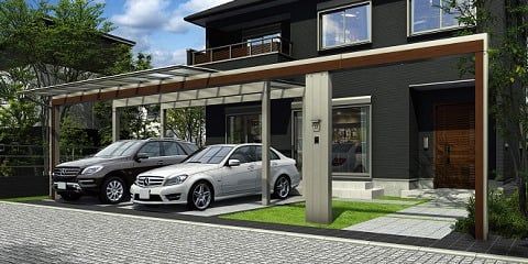 近年、駐車場屋根(カーポート)と玄関まわりが一体化している外構デザインが多くなってきました。