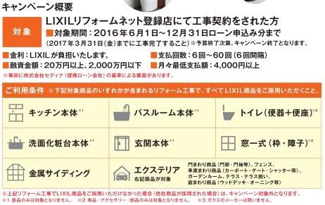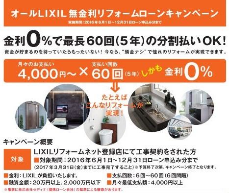 期間限定!リクシル商品で無金利リフォームローンキャンペーン!