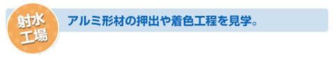 続いて、アルミ形材(カーポートの屋根や柱の部分)の押出や着色が行われている「射水工場」へ。