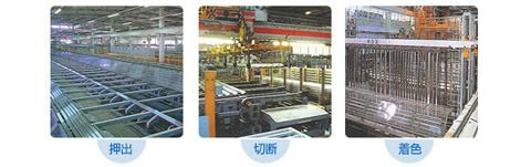 次に、形材に色をつけていくのですが、自動車工場の塗装ブースのように