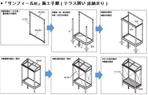 まずは、家の躯体側の部材(根太掛け・たて枠・垂木掛け)から取り付けていきます。