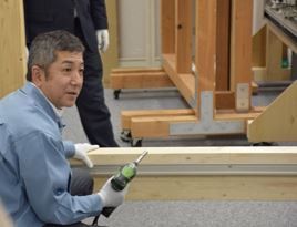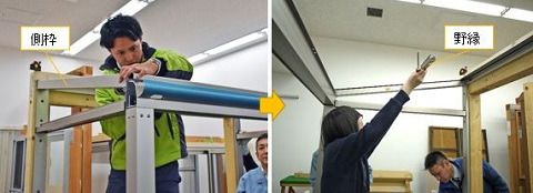 YKK AP生産本部生産技術室の佐々木さんの説明を受けながら、施工していきました。