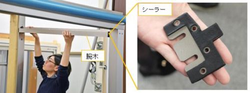 ここでも、シーラーと呼ばれる水密性を高める部材を腕木の側面に取付けます。
