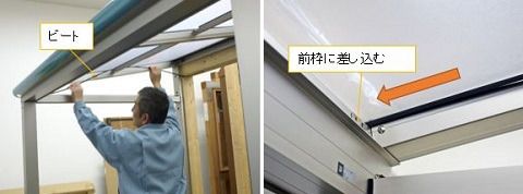 そして、屋根ふき材と側枠の隙間にビートと呼ばれるこれも雨漏れを防止する部材を取付。
