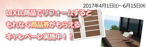 2017年4月1日〜6月15日まで。リクシル商品でリフォームすると商品券がもらえます!