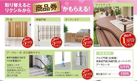 リクシルの商品に取り替えると商品券がもらえます