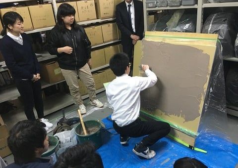 座学の後は、いよいよ楽しみにしていた塗り壁施工体験