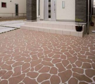土間コンクリートに石貼りやレンガ敷きなどの模様が作れるものです。