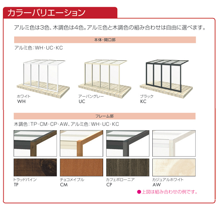 ↑柱とフレーム部の色は、好みに合わせて自由に選択ができます。