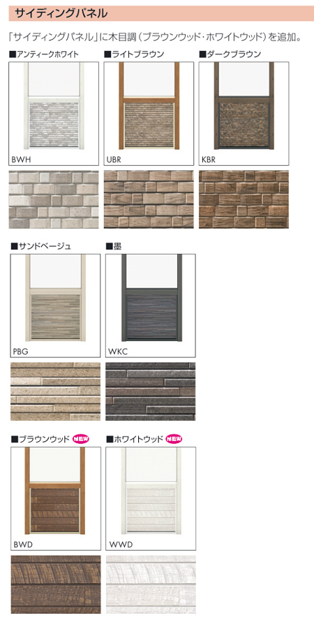 木目調のブラウンウッドとホワイトウッドは、最新色なので要チェックですね