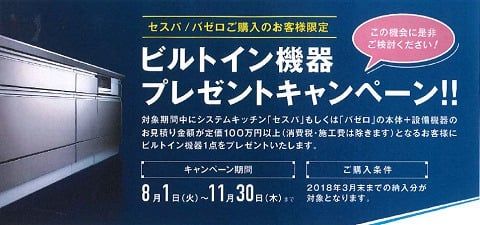 人気のキッチン「セスパ」 「バゼロ」を対象にしたとってもお得な内容