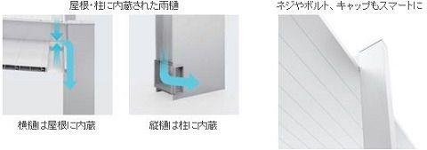 雨樋は屋根・柱に内蔵されており、見た目がすっきりとしています