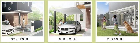 対象商品毎に「ファサードコース」「カーポートコース」「ガーデンコース」の
