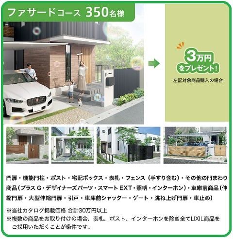 キャンペーンは3つのコース(ファサードコース・カーポートコース・ガーデンコース)があります。