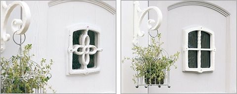 アイアン調の窓枠にアンティークガラスがつけられていて、