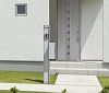 表札としての機能に加え、インターホンやポストの取り付けができる仕様となっている。表札は住まい手の好みの素材や書体を組み合わせてカスタマイズでき、シンプルな意匠の門柱は幅広い住宅に調和する点を評価した。