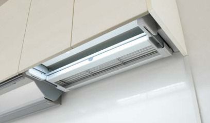 使い終わったらキャビネット下にすっきり収納。オプションのシステムライトも設置できます。