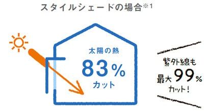 室外に設置するスタイルシェードなら、太陽熱を83%もカットしてくれるので、