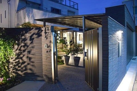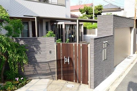 門扉とシャッターのあるクローズ外構です