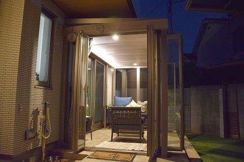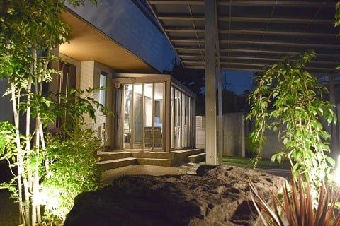 夜のライトアップが綺麗☆ワンちゃんも遊べるガーデンルームのある外構施工例☆