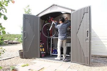 自転車を入れたり