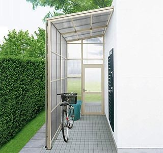 玄関脇のスペースに。扉なしタイプは自転車置き場として活躍!