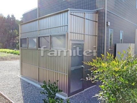外で雨ざらしにもしたくないモノの置き場所には、家の外壁に取り付けられる収納囲いが便利です!