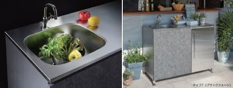 石目調とステンレス製で高級感あふれるガーデンシンクです。