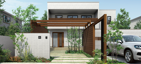 視線をほどよく遮りながらエントランスまでのアプローチをデザインできます