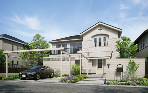柱と桁・梁を組合わせることで住宅のファサード空間に立体感を生み出し、
