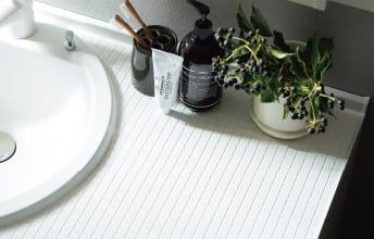 タイル調のカウンターが可愛い洗面台【シーライン】