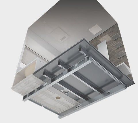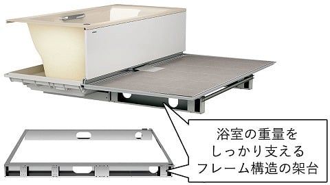 頑丈なフレーム構造の架台が、浴室全体をしっかり支えています