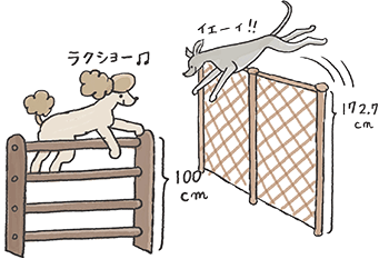 犬の大きさやジャンプ力を考慮して飛び越えられないように