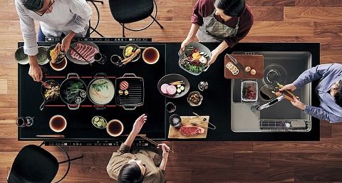 テーブル中央にIHクッキングヒーターが埋め込まれているんですよ♪