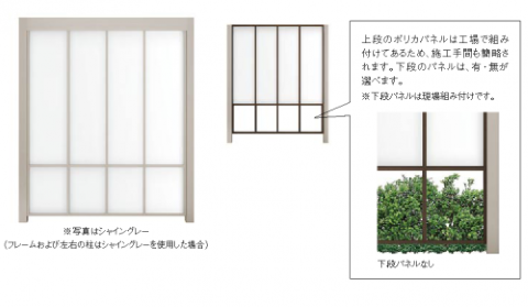 LIXILE 木製調Gスクリーン 縦長格子 下段パネルあり 形材工事込価格:231,583 円(税込)〜