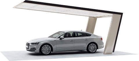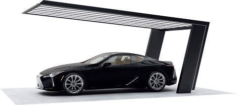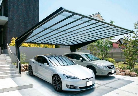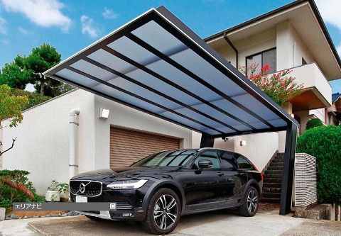 今では同じ黒でもこんなに斬新なカーポートがあるんですね