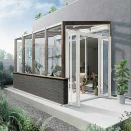 ガーデンルームタイプは屋根、前面フィックス、側面折戸パネルに囲まれた