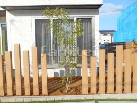お庭の境界付近に角柱を立て、デザイン性のあるお庭になっております