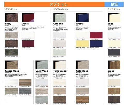 ラクエラは、シックな色、ビビッドな色、鏡面、木目調など