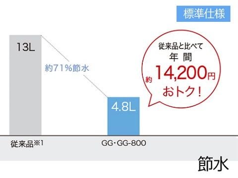 タンク式便器だから、水圧を気にすることなく設置の自由度が高いGG。
