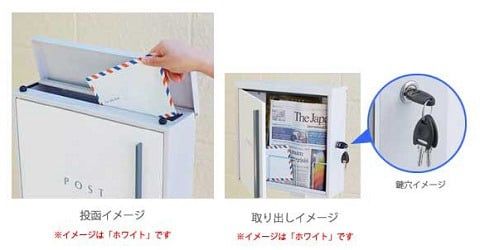 ポスト上部から投函された郵便物は、側面パネルの鍵を解錠して取り出します