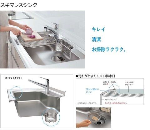 隙間に汚れがたまりにくい「スキマレスシンク」が最大の魅力です