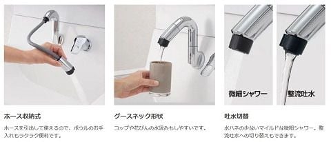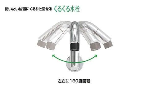 底が広くて大容量の「ひろびろボウル」と、使いたい位置にくるりと回せる「くるくる水栓」なら