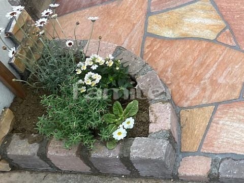 こちらは、レンガを数段積み上げた花壇です