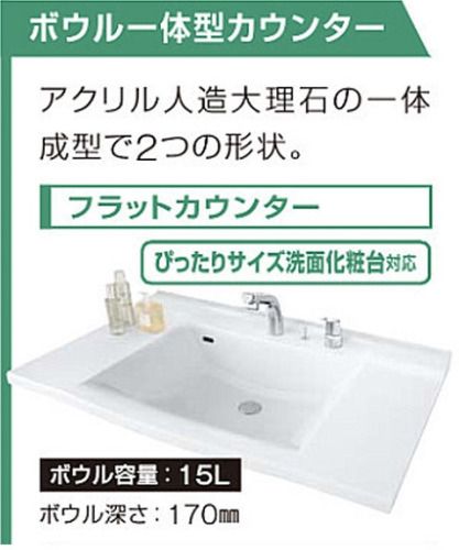 汚れや水アカが溜まりやすい隙間がない、ボウル一体型のカウンターです