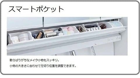 鏡を見ながら、メイク小物を自然な動作でサッと取り出せるスマートポケット