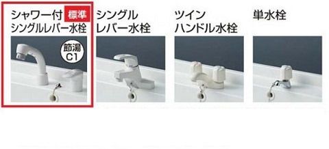 シングルレバー・ツイン ハンドル・単水栓と、4種類をご用意しています