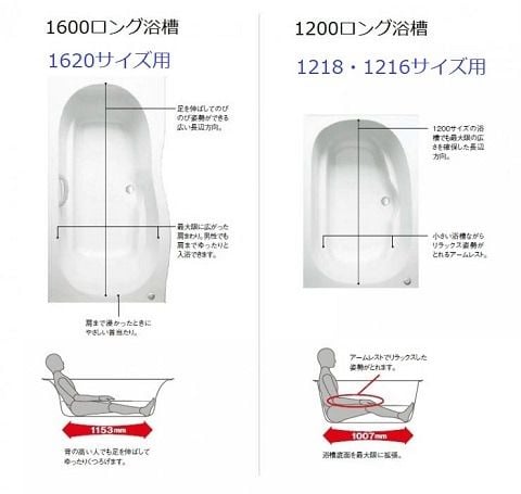 サイズによってお選びいただける浴槽も変わりますので、下記画像よりご確認ください。