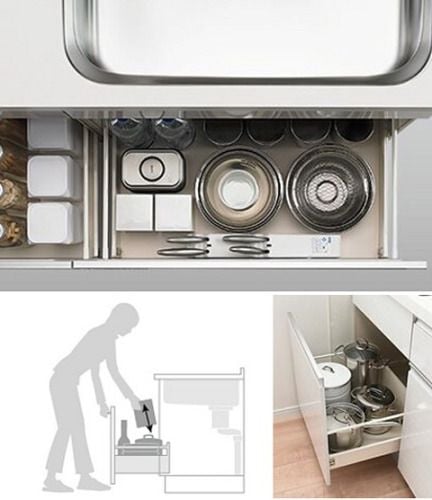 収納されているものをひと目で見渡せ、奥の物も深くかがまずにラクに取り出せます